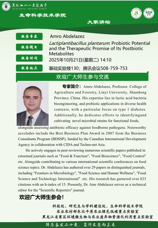 学术报告:Lactiplantibacillus plantarum: Probiotic Potential and the Therapeutic Promise of lts Postbiotic