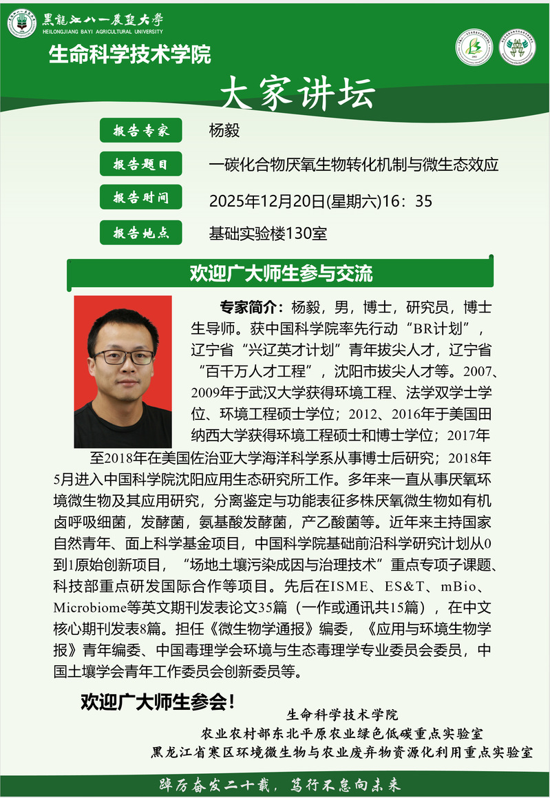 学术报告:一碳化合物厌氧生物转化机制与微生态效应